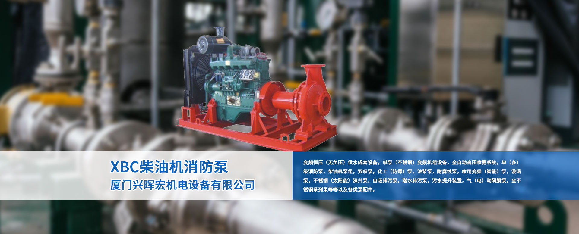 廈門興暉宏機(jī)電設(shè)備有限公司坐落于環(huán)境優(yōu)美交通便利的福建省廈門市,公司成立于2010年12月。是一家專業(yè)從事:變頻恒壓(無負(fù)壓)供水成套設(shè)備,單泵(不銹鋼)變頻機(jī)組設(shè)備,全自動(dòng)高壓噴霧系統(tǒng),單(多)級(jí)消防泵,柴油機(jī)泵組,雙吸泵,化工(防爆)泵,濃漿泵,耐腐蝕泵,家用變頻(智能)泵,漩渦泵,不銹鋼(太陽能)深井泵,自吸排污泵,潛水排污泵,污水提升裝置,氣(電)動(dòng)隔膜泵,全不銹鋼系列泵等等以及各類泵配件。
